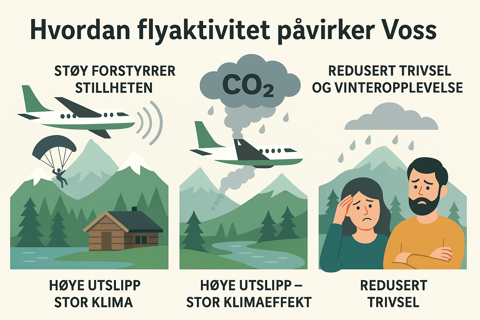 Hvordan kan det være riktig at kommunen fremmer støyende luftaktivitet, samtidig som den markedsfører Voss som en rolig og naturskjønn destinasjon?